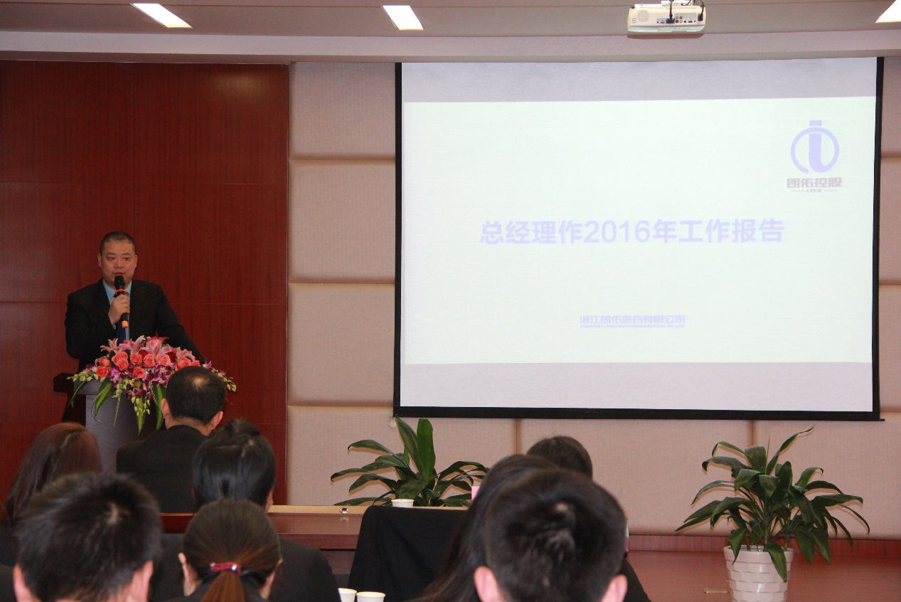 2016年1月29日,以“抓目標·嚴考核·重培訓”為核心的浙江朗佑醫(yī)藥有限公司2016年工作會議在東方電子商務園區(qū)二樓會議室隆重舉行,朗佑醫(yī)藥管理團隊攜全體員工共同參加了此次會議。此次會議旨在貫徹年度經(jīng)營指導思想,經(jīng)營目標,經(jīng)營理念;提高管理工具的運用,通過對目標及高效動作的分解,互動,取得團隊共識。