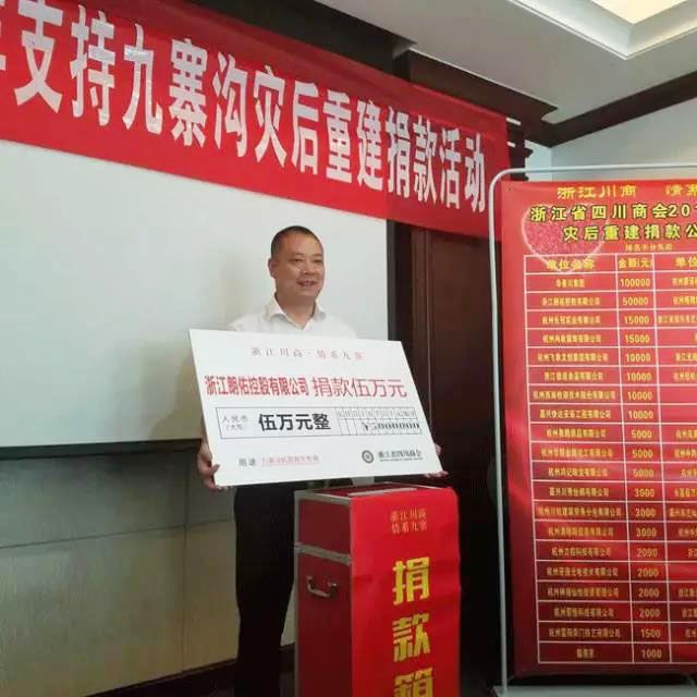 8月18日,浙江省四川商會在浙江嘉豐萬悅城售樓中心舉行了支持九寨溝災后重建捐款儀式。浙江省四川商會執(zhí)行會長、朗佑控股董事長何勇先生代表朗佑控股為災區(qū)捐獻愛心,捐款伍萬元整人民幣,為家鄉(xiāng)貢獻力量。