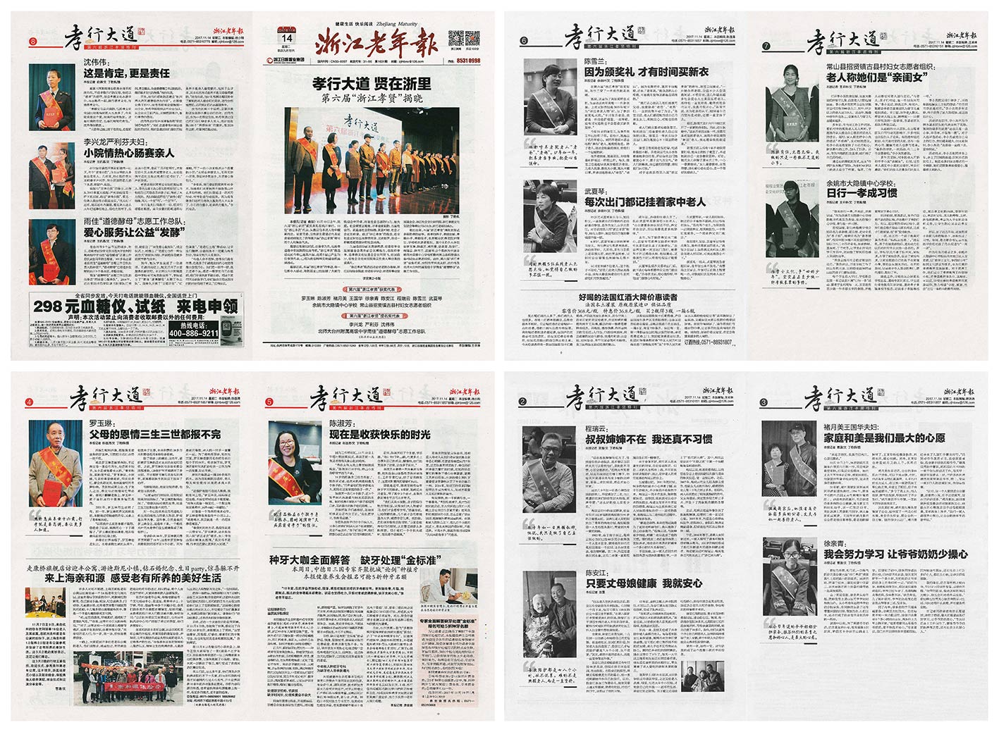 孝行大道首次在浙江老年報(bào)第1631期上全版報(bào)道。因版面內(nèi)容較多,故向大家展示浙江老年報(bào)首頁(yè)內(nèi)容,文章如下: