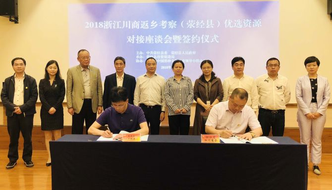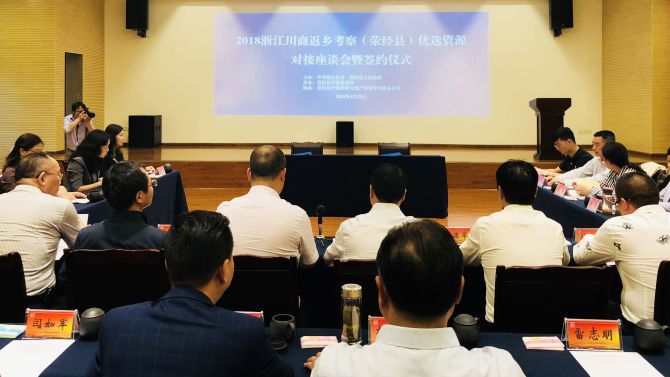 2018年4月21日—22日,浙江川商返鄉(xiāng)考察團(tuán)受到雅安市委常委、常務(wù)副市長(zhǎng)徐一心、雅安市政協(xié)副主席李亞蓉以及滎經(jīng)縣委副書(shū)記、縣長(zhǎng)李榮等領(lǐng)導(dǎo)接見(jiàn),浙江省四川商會(huì)分別與雅安市政府及滎經(jīng)縣政府簽訂了《戰(zhàn)略合作協(xié)議》??疾靾F(tuán)參觀了浙江省四川商會(huì)高級(jí)顧問(wèn)王德軍投資10.6億元的在建項(xiàng)目——新廟水電站。雅安市委、滎經(jīng)縣委政府相關(guān)部門(mén)負(fù)責(zé)人陪同參加會(huì)見(jiàn)。