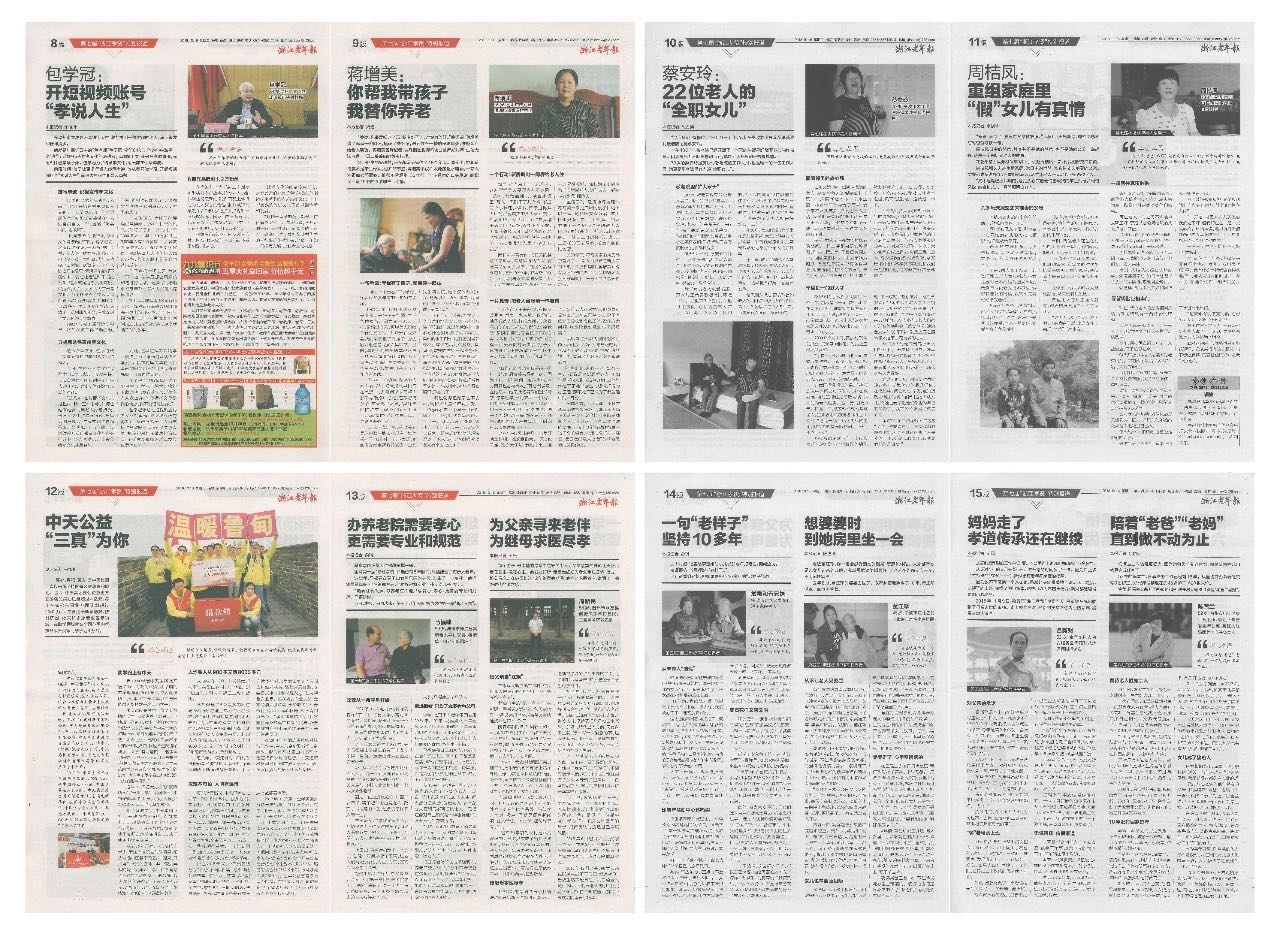 浙江老年報(bào)在10月16日第1723期報(bào)紙上刊登了孝行大道特別報(bào)道,因版面內(nèi)容較多,故向大家展示浙江老年報(bào)首頁(yè)內(nèi)容,文章如下: