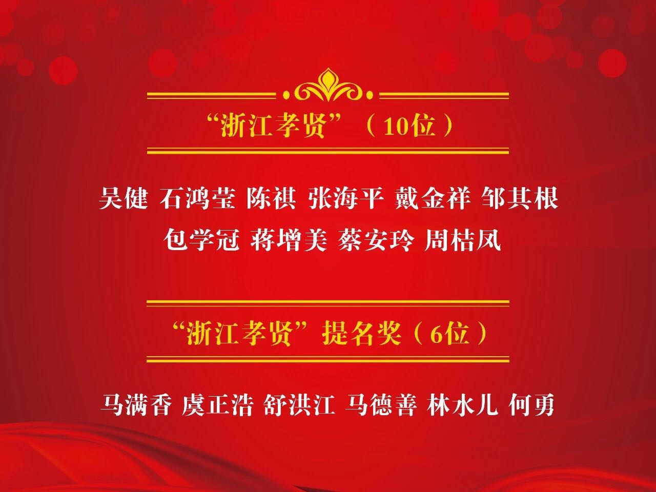 今天,第七屆“浙江孝賢”頒獎(jiǎng)典禮在浙江省人民大會(huì)堂舉行。今年,共有10位“浙江孝賢”、6位“浙江孝賢”提名獎(jiǎng),從全省數(shù)百位孝賢人物中脫穎而出。