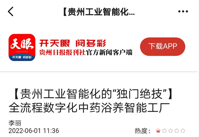 近日,貴州日?qǐng)?bào)天眼新聞?dòng)浾邔?duì)朗佑堂數(shù)字化中藥浴養(yǎng)智能工廠項(xiàng)目建設(shè)情況進(jìn)行了采訪報(bào)道,并在貴州日?qǐng)?bào)報(bào)刊社官網(wǎng)新聞客戶端(天眼APP)發(fā)布了《貴州工業(yè)智能化的“獨(dú)門絕技”全流程數(shù)字化中藥浴養(yǎng)智能工廠》。