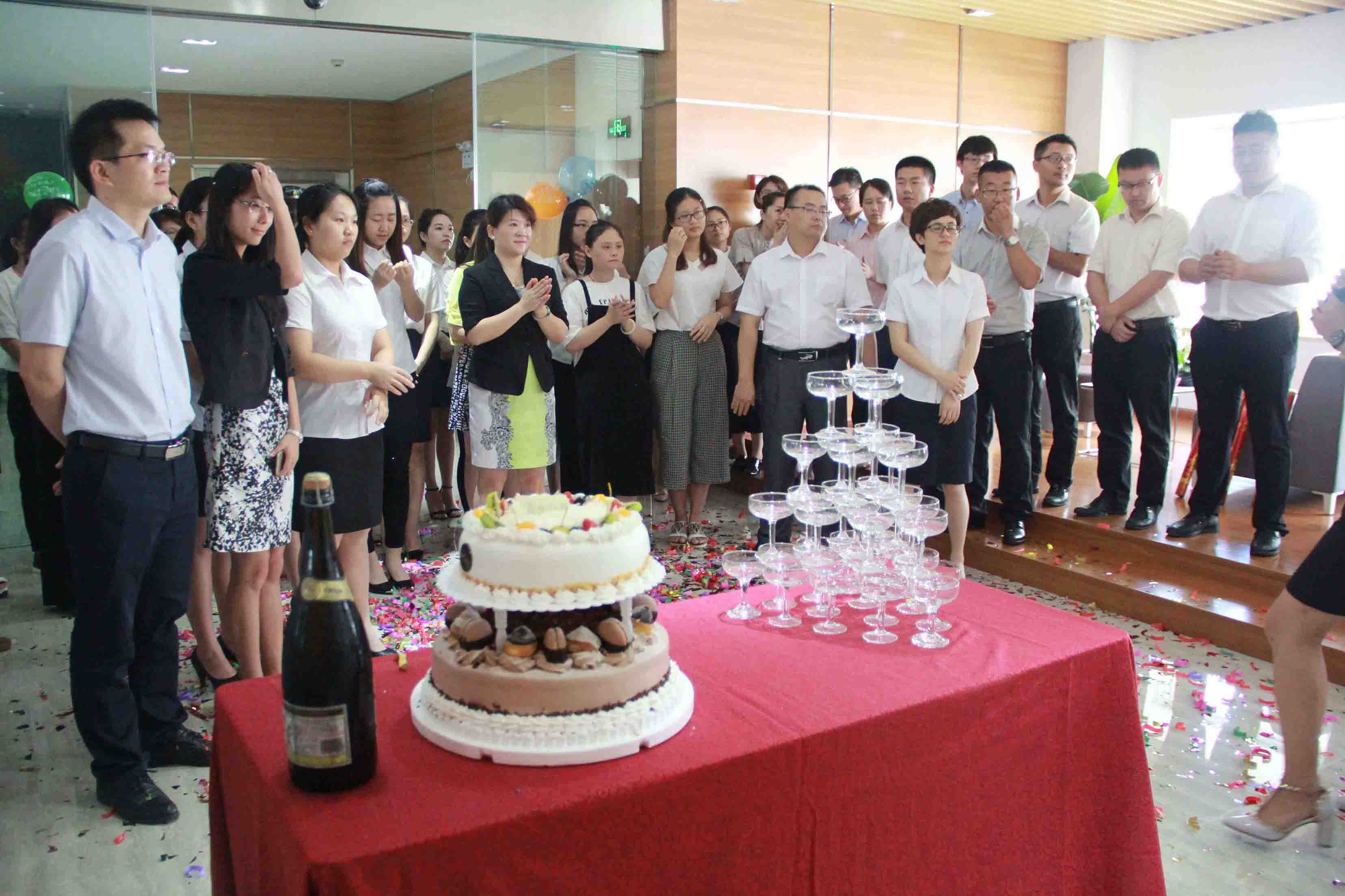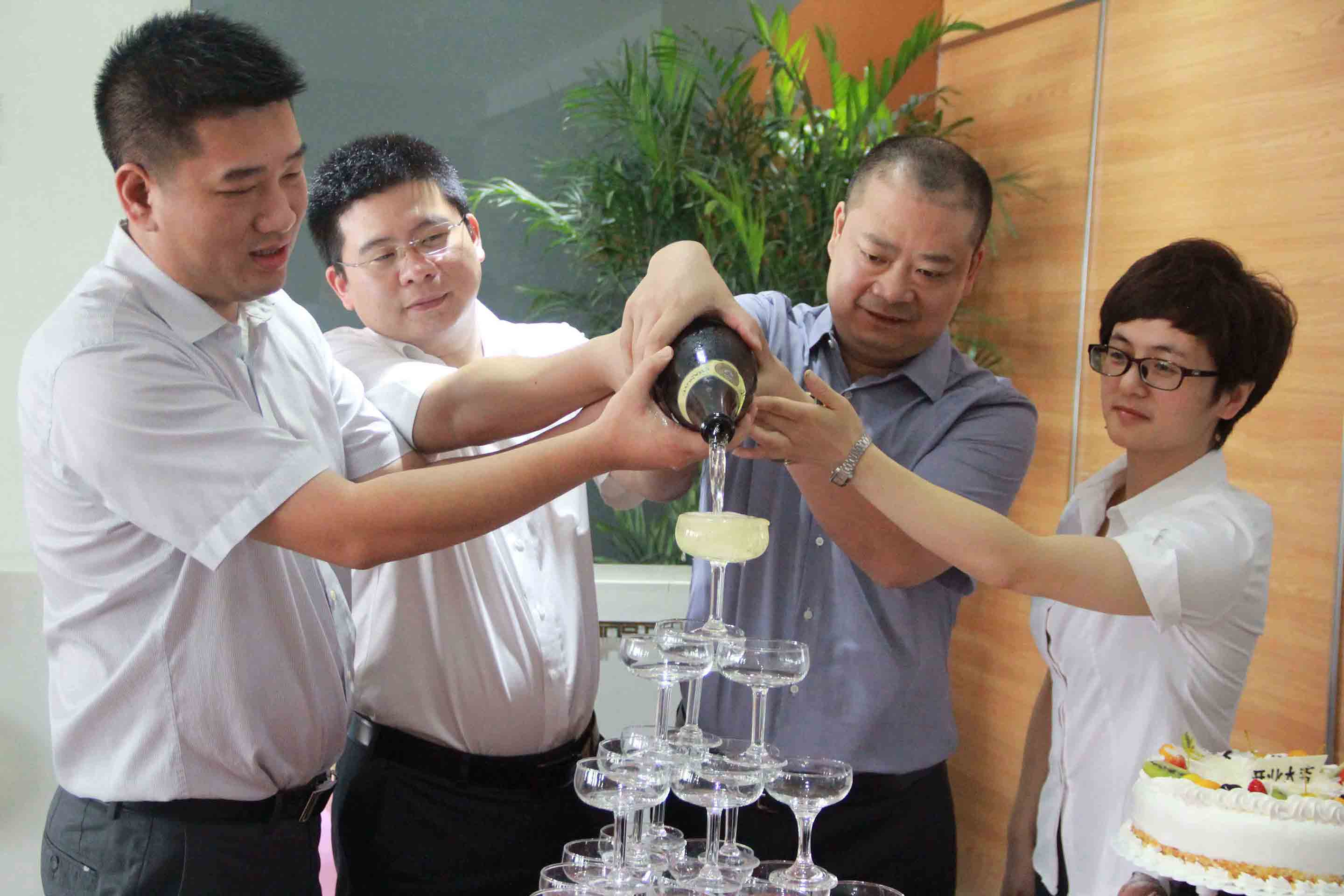 隨后,公司領(lǐng)導(dǎo)人朗佑控股董事長何總、聚仕通負責(zé)人龍總、朗佑控股總經(jīng)理助理章總、朗佑質(zhì)管部總負責(zé)人徐總一同倒香檳,切蛋糕,與朗佑全體員工一起歡慶聚仕通開業(yè)。慶祝之后,所有參與人員在聚仕通大廳進行了合影,熱鬧的典禮也正式結(jié)束。