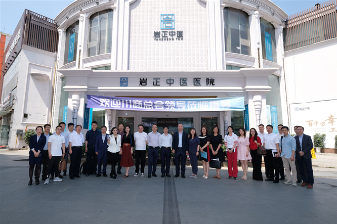 ▲川商總會領(lǐng)導(dǎo)及醫(yī)療大咖們在巖正中醫(yī)門口合影