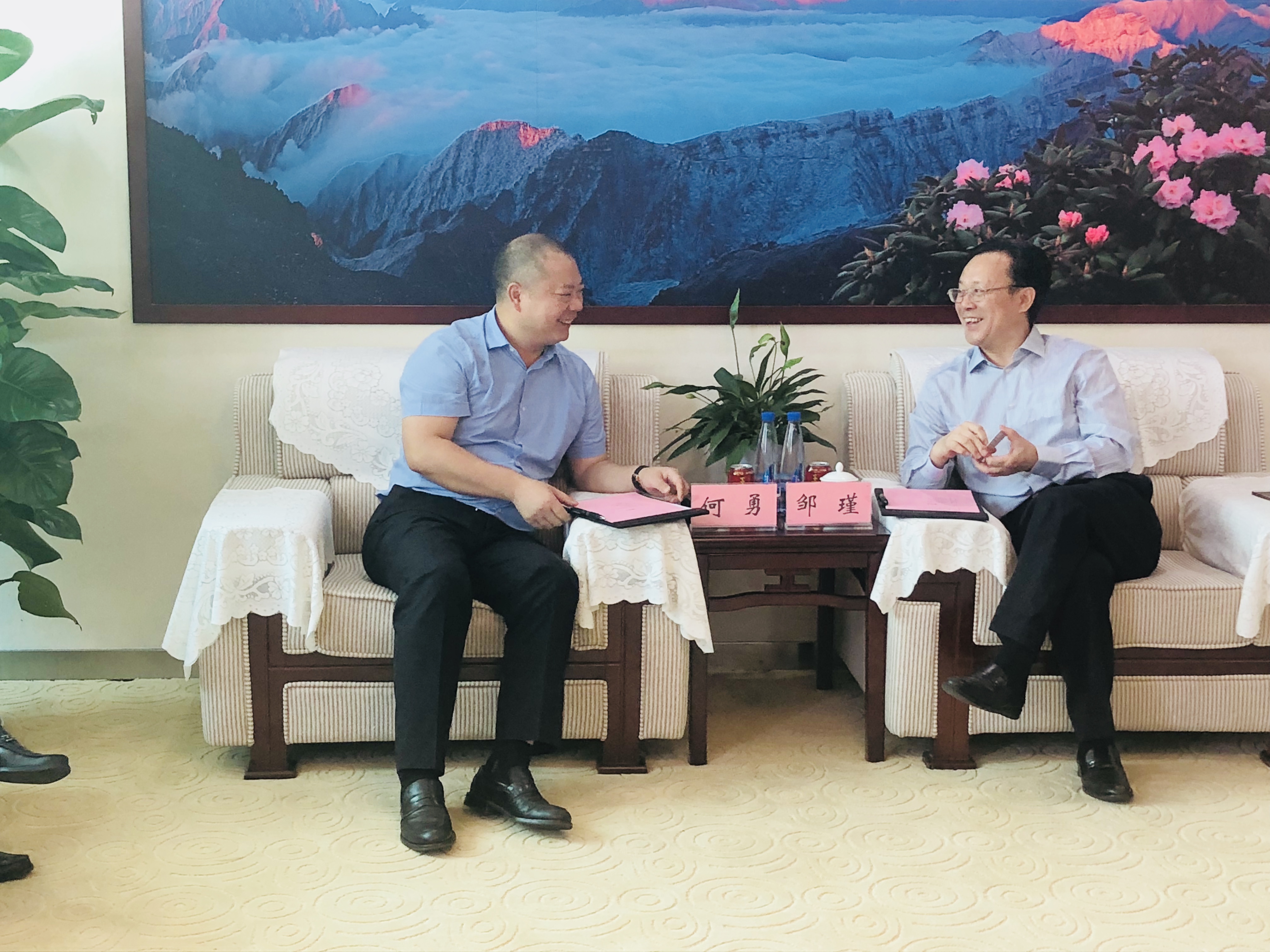 時(shí)任四川省雅安市委副書記、市長,現(xiàn)任四川省文聯(lián)黨組書記、常務(wù)副主席鄒謹(jǐn)會見朗佑控股董事長何勇